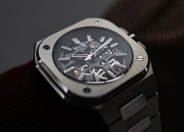 镂空版的BR05功能性和一般面盘版本几乎一致(不过镂空版省略了日期显示),平平都是链带款式,有镂空的设计要价超过20万,无镂空版本则是将近17万,价格差距说小不小,就看表主本身想要追求怎麼样的感觉。若想选择镂空款通常也就是看重它能展现出机械表的原始本味,以及比起无镂空版相对稀有的优越感等等,虽然有无镂空广义来看都是同一款表,不过採用开面设计的镂空版可以更直接看到机芯零件结构,这对爱表人士来说无形中就是一股强大的诱因。