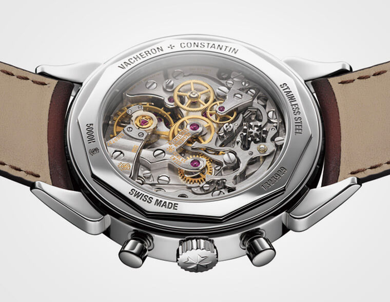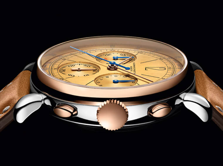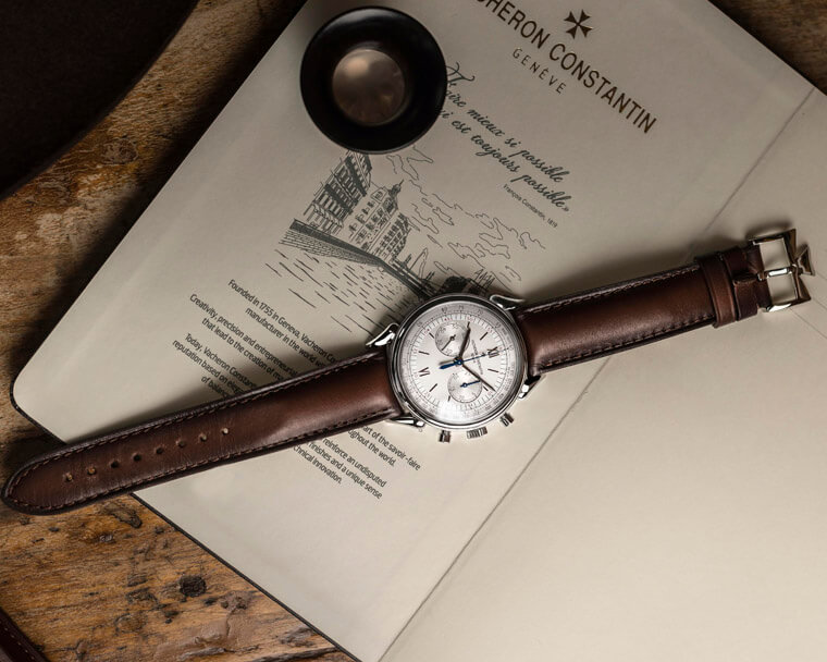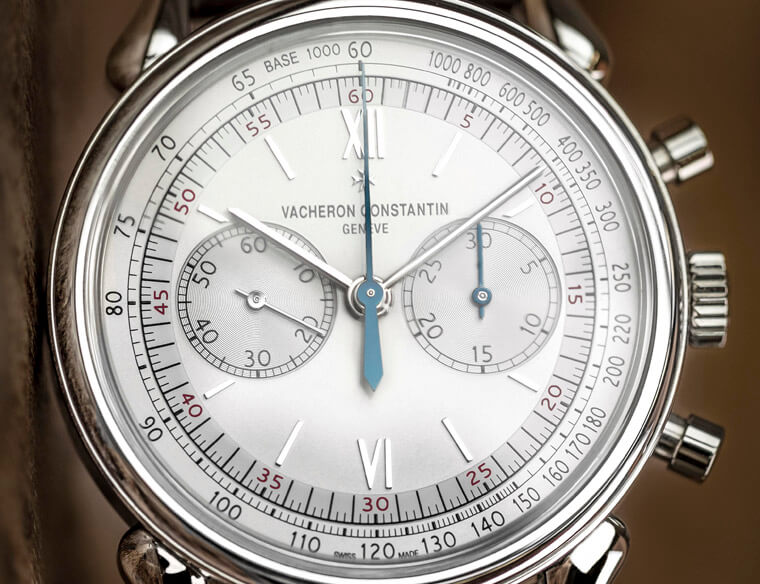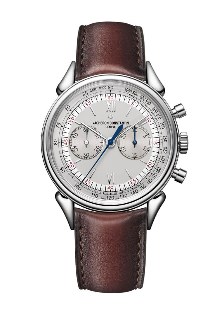 也许是在回应市场对Hodinkee版的狂热,2019年VC推出的这款同样採用了不锈钢表壳,定价甚至比Hodinkee版还便宜,而且没开限量,对于当初向隅的玩家来说简直是慈悲。比较两代不锈钢款,Hodinkee版採用了炭灰色面盘,官方版则是标准的银白面,不过将中央计时秒针和右边的30分积算针改回了蓝钢材质,另外联名版的表带附有跟面盘同色的鱷鱼皮带和两色牛皮带共三条,官方版搭的则是由义大利皮件老厂Serapian特制的牛皮表带。