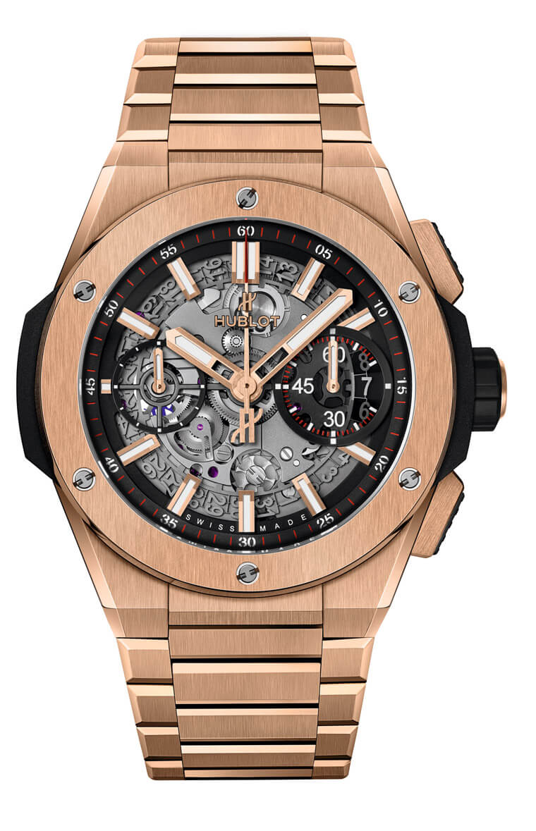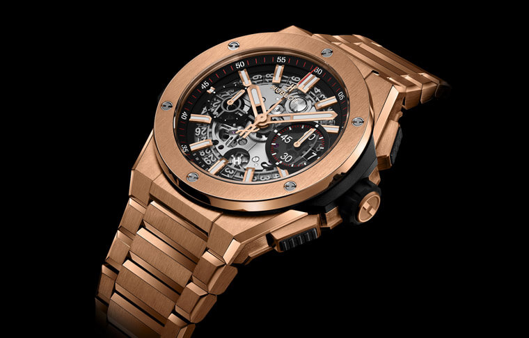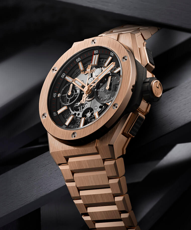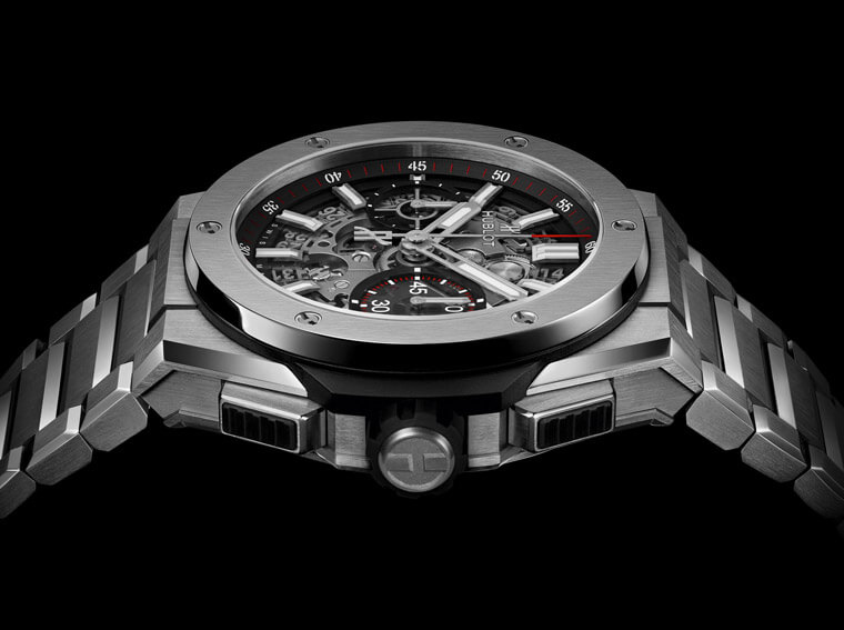 宇舶此次回溯2005年初代Big Bang的设计风格而将Big Bang Integral的计时按把从圆形改回矩形,实际上这款新作的链带灵感就是来自系列早期的计时按把。这种整合式链带除了能提升强度并且呼应表壳造型之外,它对于细节的要求相较于其他高级品牌的链带款式也更高,包括每枚链节的边角都一一拋磨加工,且採用棱角与倒角交错的线条营造出深邃立体的视觉美感;还有个重点在于由于移除表带快拆系统的关系,表耳连接表带部分因而能收窄,使腕表更能贴合手腕,佩戴舒适度随之深度进化。从外观到实用层面,Big Bang新款链带都展现出令人惊艳的革新成效。