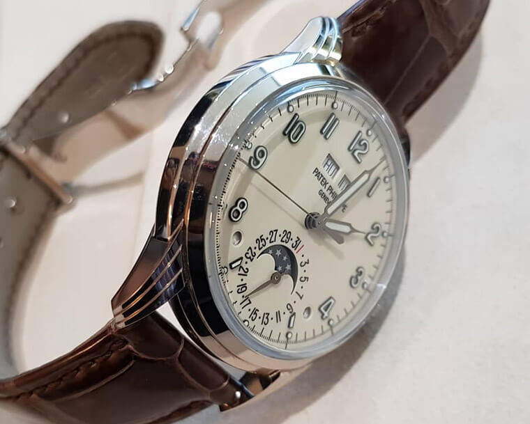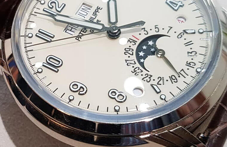 ▲PP 5320万年历的设计灵感源自百达翡丽博物馆所收藏制作于1940~1950年代的古董表,乳白色漆面面盘质感很吸引人。