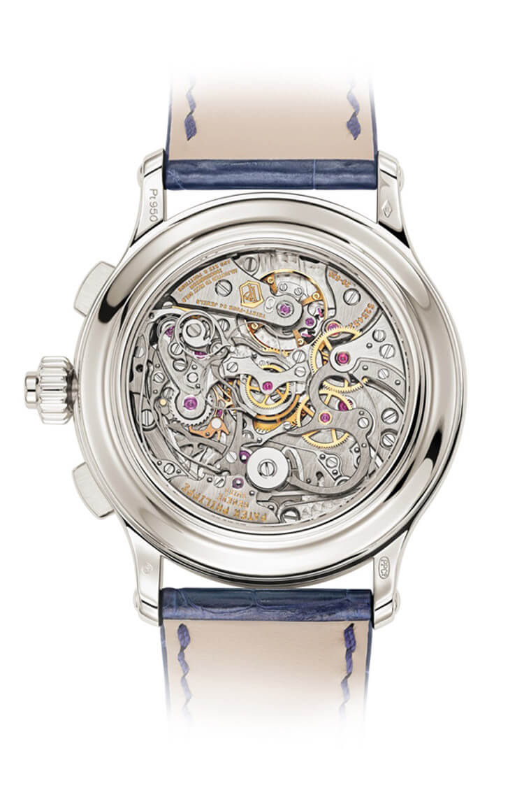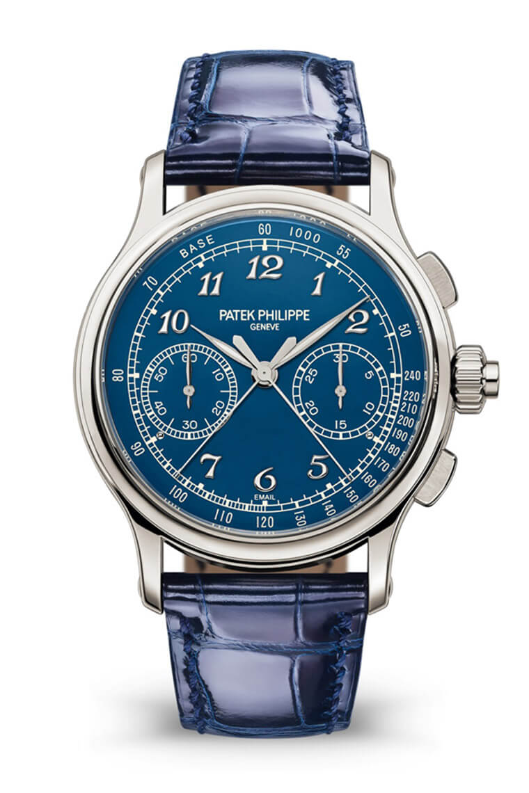 百达翡丽先前在2015年首度发表5370P双秒追针计时码表,当时手表採用大明火黑色珐琅面盘。2020年这款超级复杂功能时计推陈出新,延续品牌拿手的大明火珐琅面盘传统,以崭新蓝色示人。从鲜明且精致的18K金珐琅面盘到深蓝色的鱷鱼皮表带,手表整体色调和谐统一。同时它也承载PP 7项专利技术,包括重新设计的双秒追针计时装置,内外都展现出表王过人制表工艺。