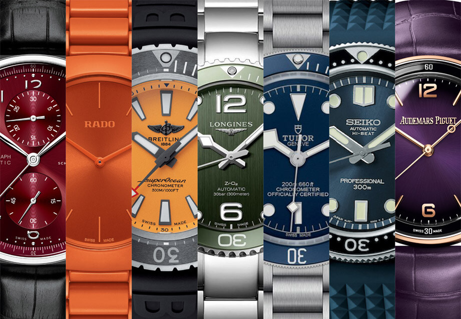 手表发展到近代有一个趋势就是愈来愈大胆活泼,不管是造型设计、新颖材质或是整体的配色组合等,现在的手表比起20世纪时显然已经进展到下一个世代,很多从传统角度看来不太可能实现的想法,在今日的手表身上都一一实现了。姑且不提功能、外观塑形上的创新,单就手表的配色来说,现在市场上的手表已经真正达到五顏六色的境界了,过去印象中手表面盘最常出现的顏色大概就是黑、白、银等等保守的顏色,这些配色的确是保险又百搭的选项,即使在今日还是市场上的主流;然而在此同时,这些传统配色已经无法全面满足挑剔消费者的胃口,所以近年我们看到有些品牌似乎也想打破这样的旧框架,所以有些面盘顏色出现的比例愈来愈高。
