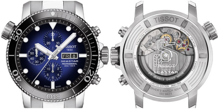 海星系列原本三针是搭机械机芯、计时码表是搭石英机芯,不过这只限量新款首度改换新款自动机芯,虽然防水性能和既有的款式一样为300米,但这次天梭导入新技术替手表装上了排氦阀装置,让手表的防水能力更显专业而令人放心。改换机械机芯以后,手表面盘的格局也从下三眼调整为左三眼,不过这款表台湾目前还没上市,有兴趣的人可能要再多等等。
