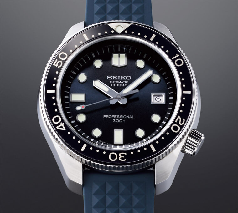 2020年SEIKO为了庆祝品牌首款潜水表问世55周年而一口气推出1965至1975这十年中最重要的指标性三款潜水表复刻之作,1968这款潜水表的两大特色包括防水性能达到300米,同时它还具备36,000次高震频!表冠至于4点方向的设计也很有辨识度,复刻版採用深蓝色生动地诠释潜入黑暗而神祕的海洋世界时,光线逐渐消逝的情境。