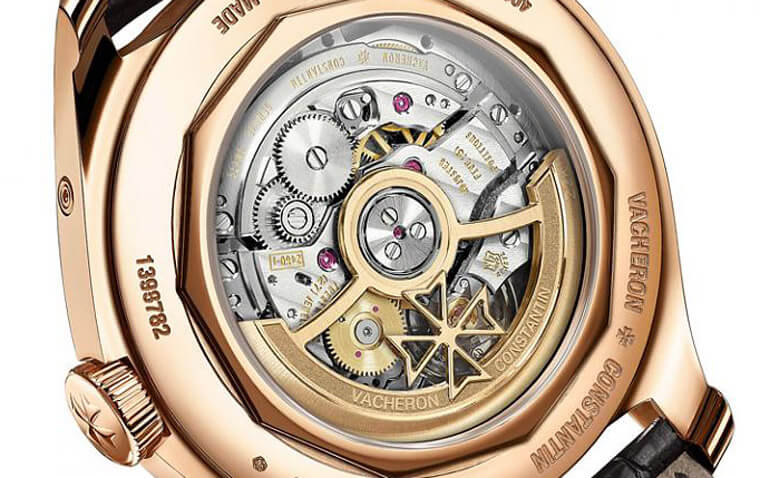 ▲Fiftysix全系列均採用全新自动上链机芯,透明底盖可让机芯上的装饰及江诗丹顿专门为此系列而设计的全新自动盘一览无遗。