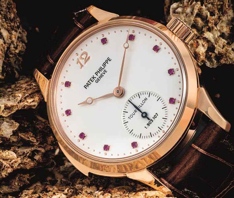 2008年时PP制作出一款3939三问陀飞轮,既有双重复杂功能加持,它的面盘上也同样镶嵌红宝石刻度提升稀有珍贵性质,这款大复杂手表的估价也有500,000~1,000,000美金的水准。