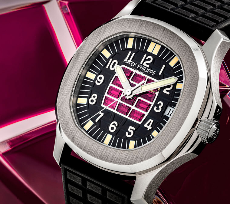 以上提到的都是正装复杂功能,事实上本场拍卖会中也有像是Aquanaut 5063这样的运动表作品,它是1997年出厂的老表,表壳以白金制作反而是系列中的异数,而它的红宝石不像前几款都是镶在原本的时标位置,百达翡丽反而改在面盘中央镶上12颗可以呼应格纹的矩形红宝石,由于实在太少见,所以这款表的预估价同样达到500,000~1,000,000美金。