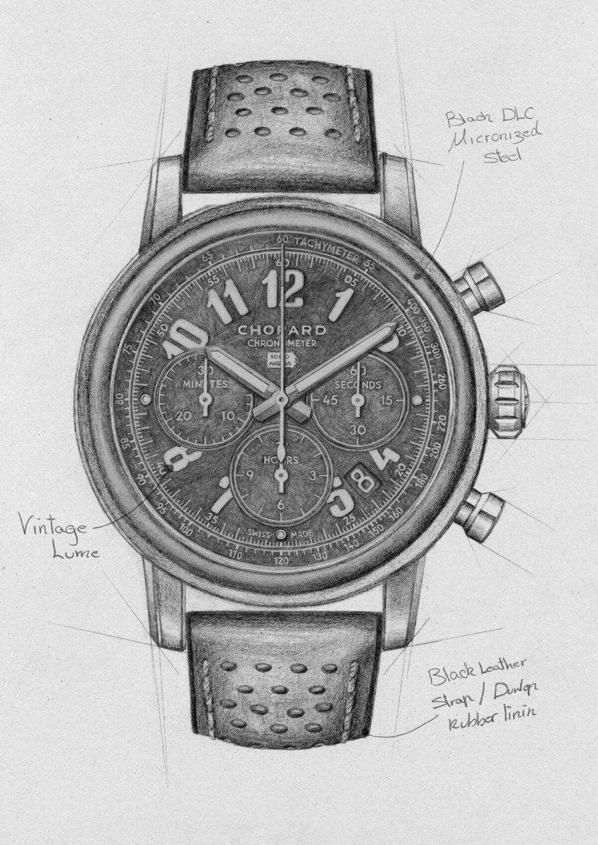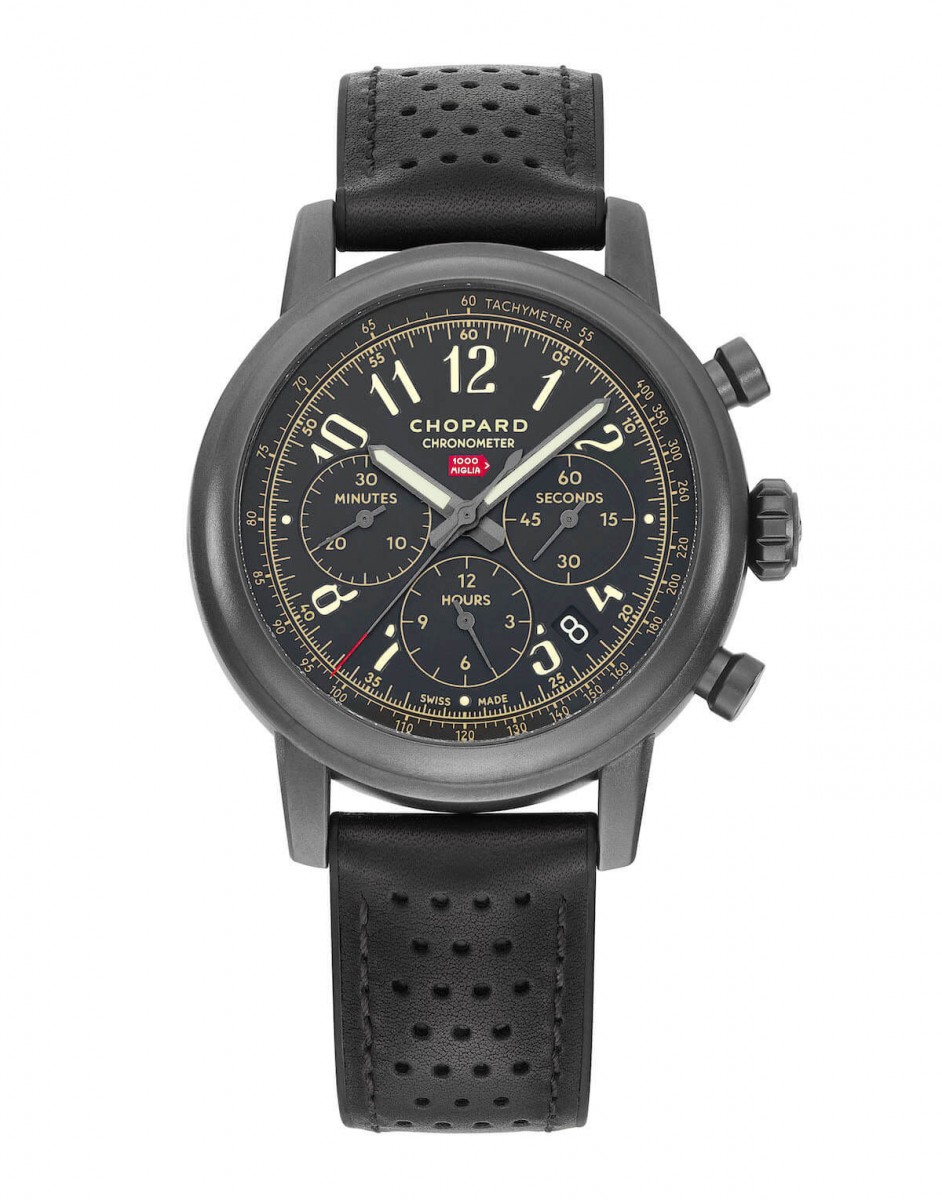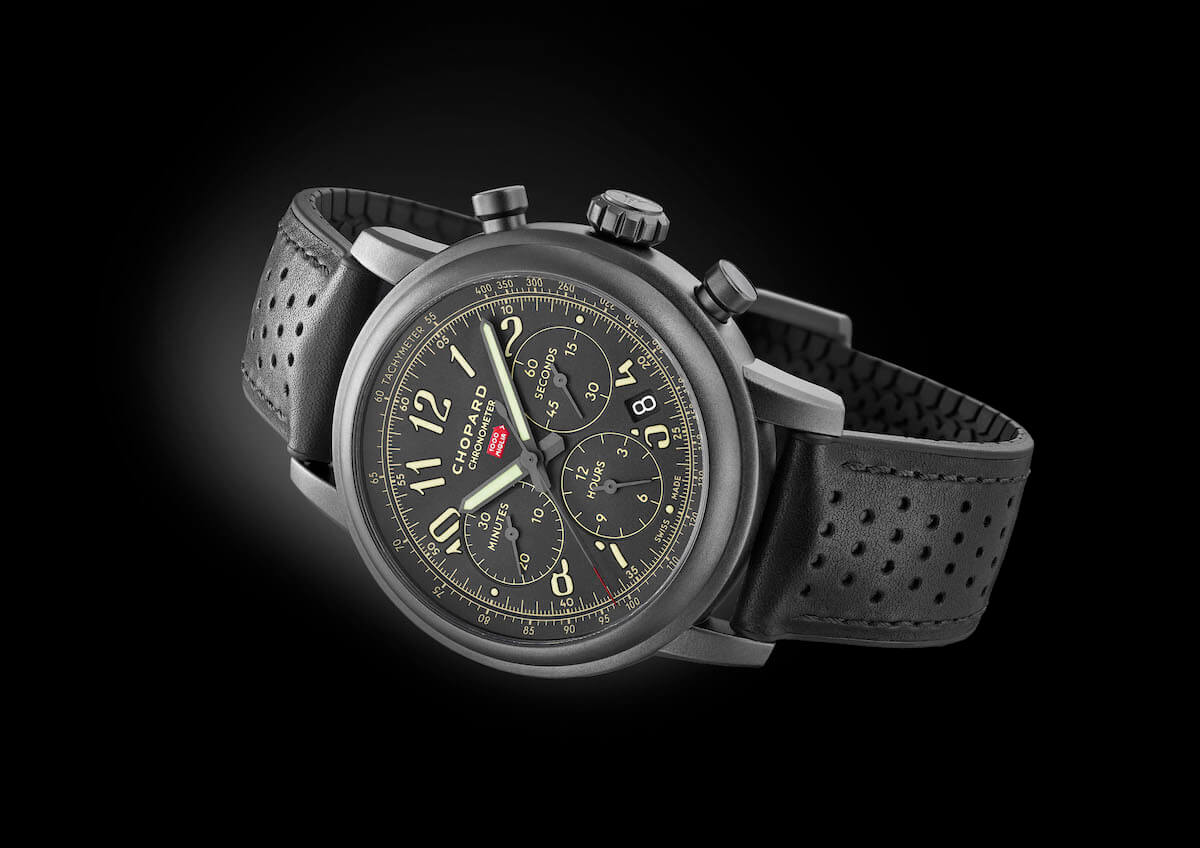 Mille Miglia 2020限量表重新演绎全黑All Black主题,採用微珠打磨类钻碳(DLC)处理表壳,搭配哑光黑色漆面表盘和「复古黄色」刻度时标形成强烈鲜明对比。这一色彩组合非常适合搭配日常或晚间佩戴。萧邦总裁Karl-Friedrich Scheufele提到:「我们在设计Mille Miglia 2020限量表时,考虑到年轻一代对古董车的兴趣日益浓厚,之前就有看到年轻新婚夫妻或者父子二人参加1000 Miglia千里赛,这些新血对延续活动十分重要,所以今年推出的腕表就是为他们量身打造的,别具时代意义。」