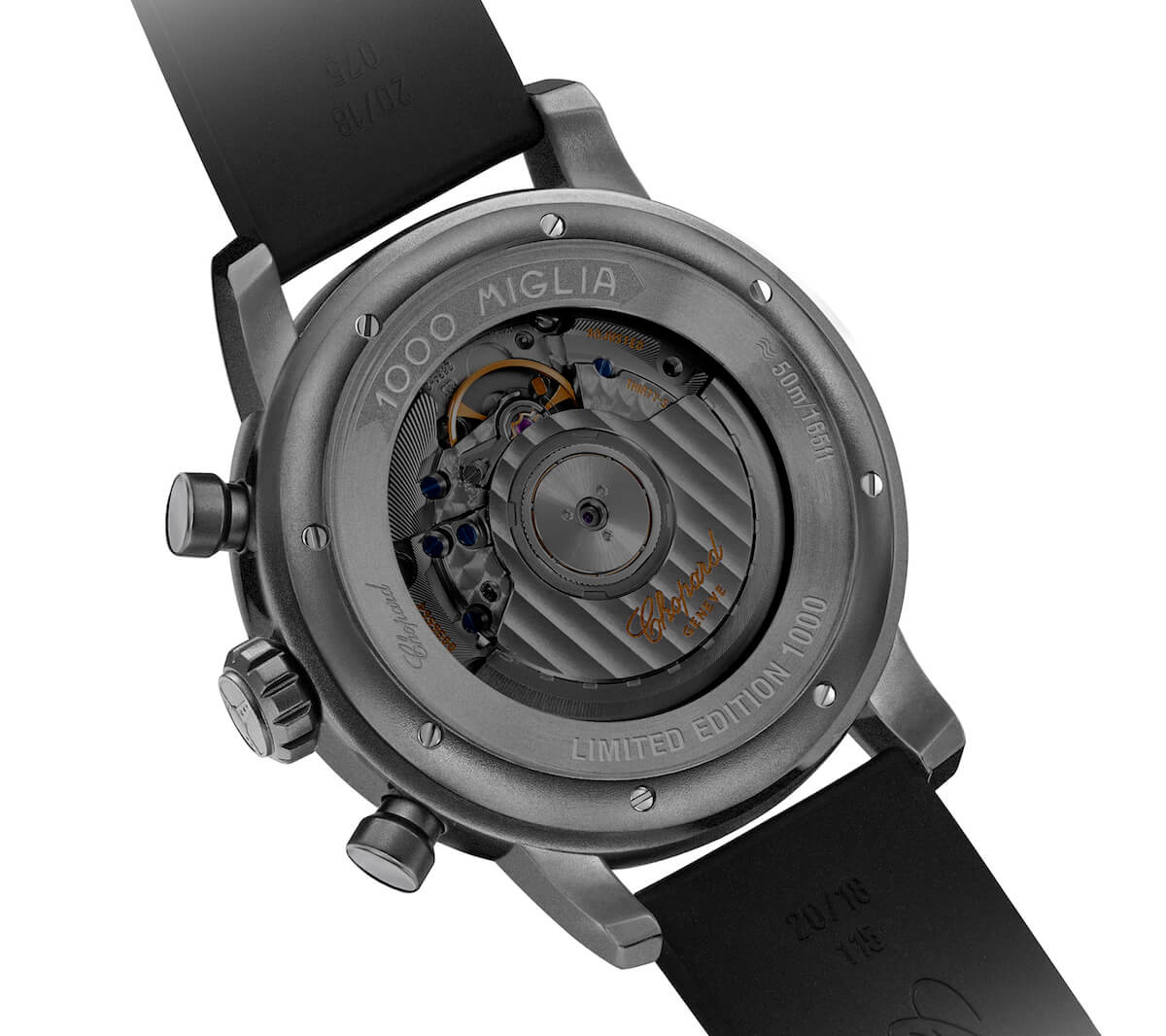 ▲搭载经瑞士官方天文台自动上链机芯,可提供42小时动力储存,蓝宝石水晶玻璃表底盖边缘饰有1000 Miglia千里赛标志以及每款腕表的独立限量编号。