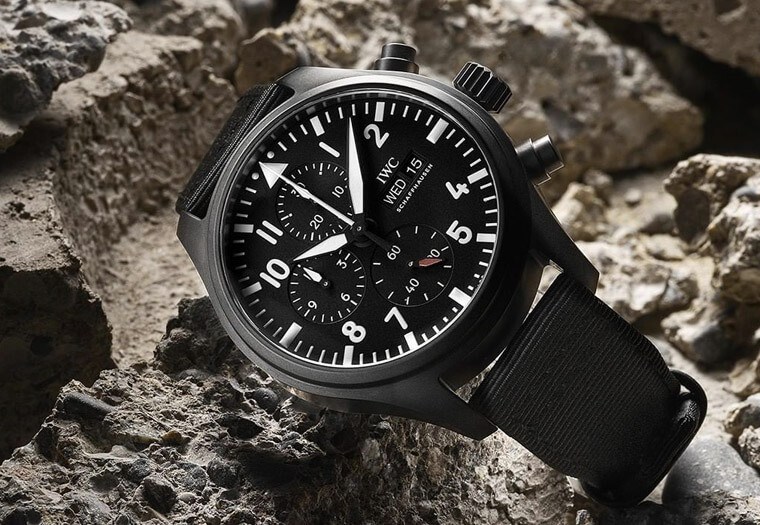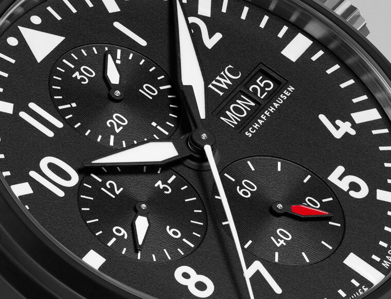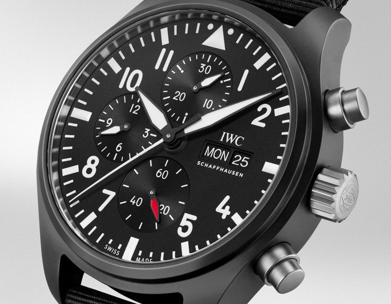 “Top Gun”这个系列名称不是指汤姆克鲁斯主演的经典电影《捍卫战士》,而是来自美国海军战斗机防卫学校提供的「战斗机战术教官」特殊训练课程,IWC最初是在2007年开始推出冠有“Top Gun”之名的飞行员表款,发展到现在也已成为品牌飞行表的一个重要分支。目前IWC针对飞行员系列的安排颇有意思,这个系列基本上还是以不锈钢表壳为大宗,但是还可以分成喷火战机-青铜表壳、Top Gun-陶瓷系科技表壳等,这两个系列反而拥有较多非不锈钢表壳的款式,而黑色陶瓷壳除了具有计时功能的IW389101,尚有大三针、万年历等作品,属于建构Top Gun的核心材质。