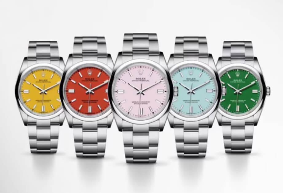 ▲Oyster Perpetual 41mm除了粉红色面盘以外,其他四色漆面都必须要超定价50%以上才能入手,其中又以绿松石(Tiffany蓝)面盘最受欢迎。