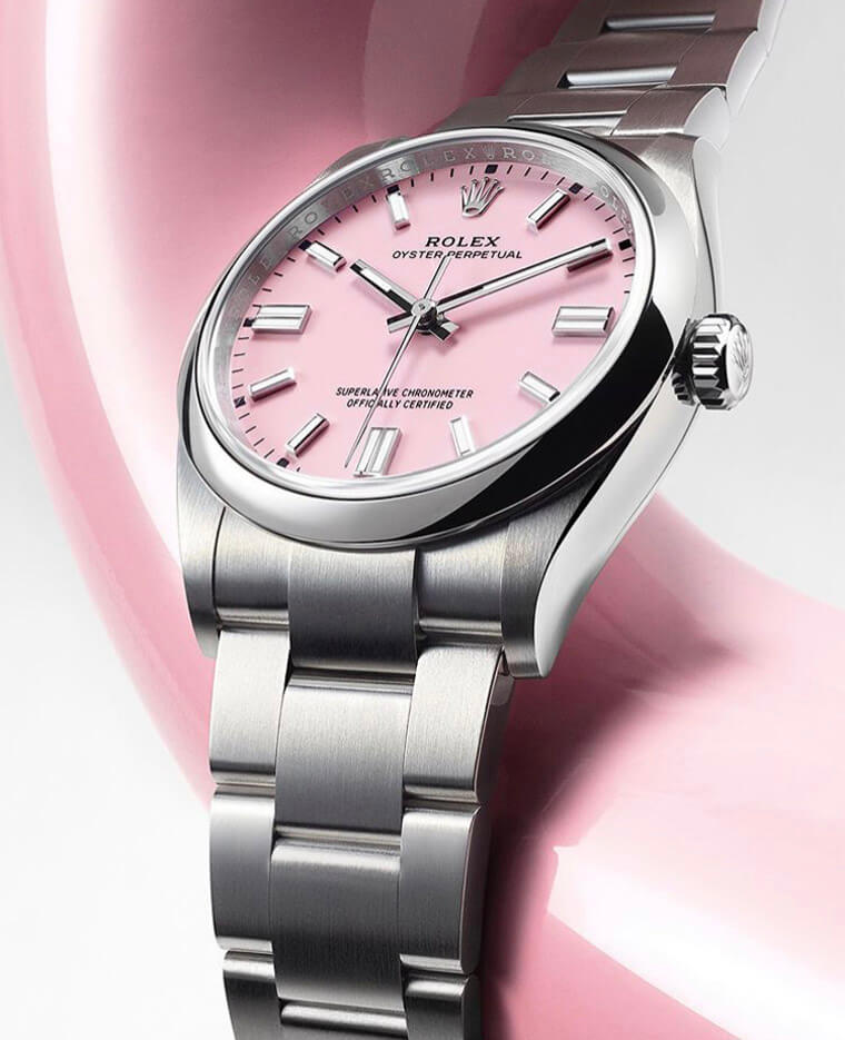 ▲表径稍小一点的Oyster Perpetual 36mm反而粉红色面盘相对受欢迎,在五色漆面中溢价程度高居第二,从中突显出不同表径的主要购买客群也有所差别。
