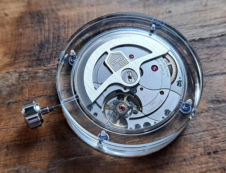 Aquis Calibre 400日期表简单来说有三大特点,包括全面提升的抗磁性能、相对充裕的5日链动能,以及超车市面上多数品牌的10年保固。ORIS特别改造了自动盘机制,以滑动轴承取代滚珠轴承,并採用超过30枚抗磁组件(包括硅制擒纵轮和擒纵叉等),对于提升手表的上链效率以及维持机芯走时精准度都很有帮助。