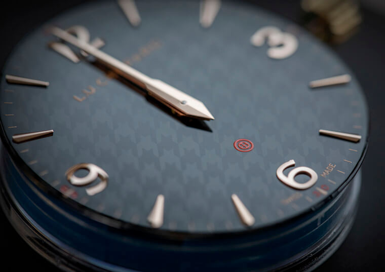 从此次跨界联名「西装之王」KITON的CHOPARD L.U.C XP Il Sarto Kiton表款融入一股高级订制服的品味与质感。萧邦首度与义大利拿坡里的顶级时装订制品牌KITON合作,在L.U.C系列令人熟悉的典雅纤薄外型中,挹注更鲜明的绅士格调。面盘上,萧邦透过电镀处理加上漆面润饰,于黄铜面盘表层增添KITON高订服常见的经典元素——千鸟格纹,并且搭配金色时标以及太子妃尖剑型指针,在深色面盘的衬托下读时相当轻松写意。此外面盘6点方向还装饰了红色的KITON Logo,赋予整体印象沉稳大方的腕表一丝活力气息。