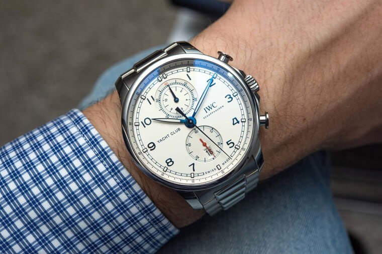 葡萄牙系列本质上就是正装表,Yacht Club虽说风格上融入了运动表的色彩,但它的设计与真正的运动表毕竟不同,因此佩戴这款表时还是不宜从事过于激烈的水上甚至水下活动,如果是日常佩戴绝对可以完美胜任,它比起传统正装表显得更加全能,但是如果你的需求主要是和防水性相关,IWC旗下还有专业的Aquatimer系列可以考虑,虽说Yacht Club的中文译作航海精英,但这不表示它与潜水表可以画上等号。