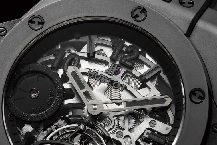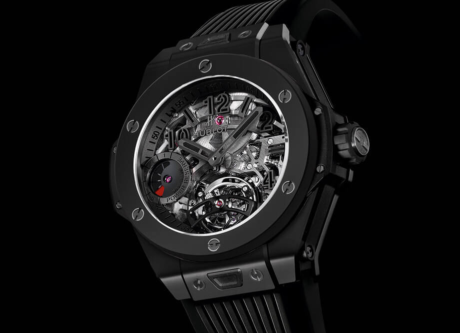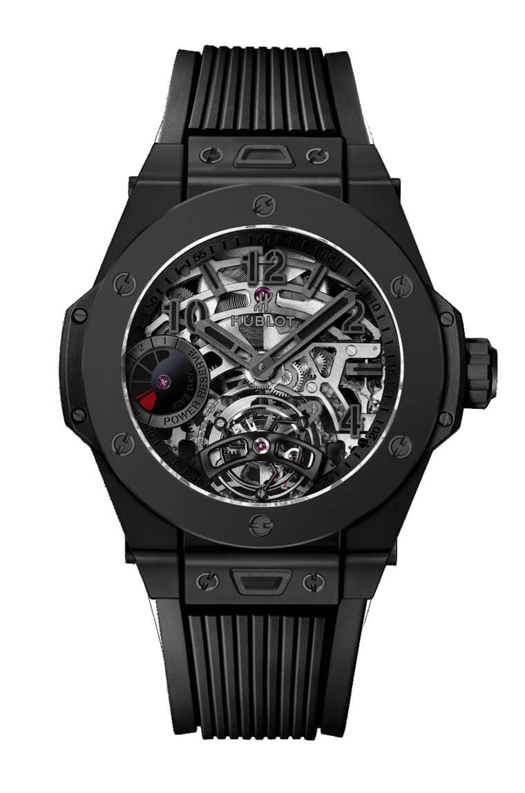 陶瓷材质/HUB6016手动上链机芯/时、分显示/陀飞轮装置/动力储存显示/蓝宝石水晶镜面、透明底盖/防水30米/表径45mm/参考价:NT$ 2,943,000