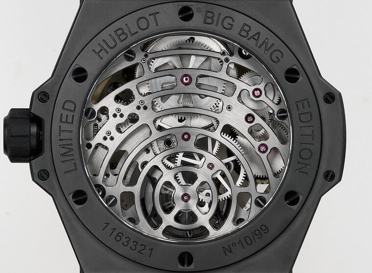 对多数品牌而言,要打造出像Big Bang系列的陶瓷表壳难度很高,因为它的「三明治」表壳构造相对复杂,用高硬度的陶瓷要做出造型多层次且零件繁多的表壳是项大工程,但是宇舶制作陶瓷壳的经验很丰富、投入的资源也够多,除了Big Bang系列外,他们也做得出Spirit of Big Bang系列的酒桶型陶瓷壳或MP系列完全没有固定规则可循的立体陶瓷表壳,因此要开发出Big Bang 5日动力储存陀飞轮对品牌来说已经是驾轻就熟的任务。这款Big Bang 5日动力储存陀飞轮是同款作品中目前唯一的陶瓷壳作品,这款作品甚至连透明表壳的款式都比陶瓷壳要多,可见其相对稀有的收藏价值。