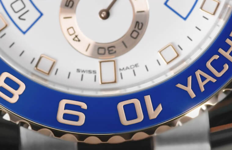 Yacht-Master II表径为更硕大的44mm,佩戴在手上更醒目易读,而它也从一代的三针功能昇华为计时码表功能,只不过它的计时功能并非传统形式,而有着更强烈的帆船运动专用倾向。首先它的表圈刻度并非传统计时码表可能会配置的流速器、测距仪等设计,而是在上面列出0-10的数字,最底下则是刻上手表名称”YACHT-MASTER II”,若是一般使用者,可从面盘6点方向的小秒盘与时、分指针掌握当下时间资讯,同时也能以中轴的计时秒针来进行短时间的计时。