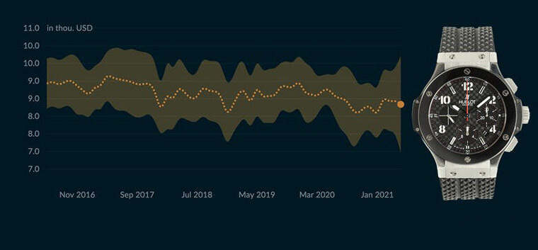 根据知名二手表交易网站Chrono24的统计,Big Bang和Classic Fusion是市场最喜爱的两款宇舶手表系列,其中代表Big Bang源头的301.SB.131.RX和301.SX.130.RX这两款型号询问度相对高,它们是品牌最初推出的一批Big Bang手表。