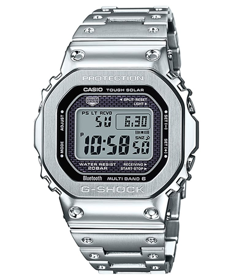 最大特徵自然是一方面继承原版DW-5000C的设计之餘,再将表壳改採全金属化设定。不锈钢的外观替手表营造更多高级感,表圈上精致的拉丝处理与拋光过的表壳与链带对比呈现一种沉稳大器的氛围。表款除了功能强大的Tough Solar技术和接收世界六局电波外,它还有更多丰富实用的功能,例如能够透过蓝牙与智慧型手机连接与专属App对接获取最精确的时间讯息。