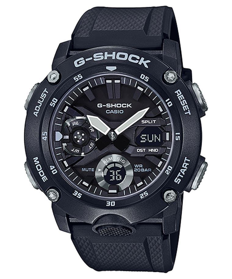 表壳採用碳纤维核心防护结构,G-SHOCK用碳纤维增强树脂牢固地保护机芯。外观虽然是单色调,但因为造型自成一格所以看起来有不错的辨识度。这只表的独特之处在于它融合几个有趣的设计元素,例如6点钟位置的大型照明按把和指针位移功能(当时针或分针与LCD液晶重叠时,可暂时移动确保可视性)。