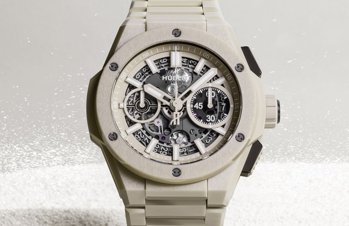 ▲Big Bang Unico Integral陶瓷链带计时码表採用的4种新配色灵感来自热带地区深植人心的景物,从沙滩、海洋到丛林,与自然互相呼应的色彩是塑造手表清新视觉感受的关键。
