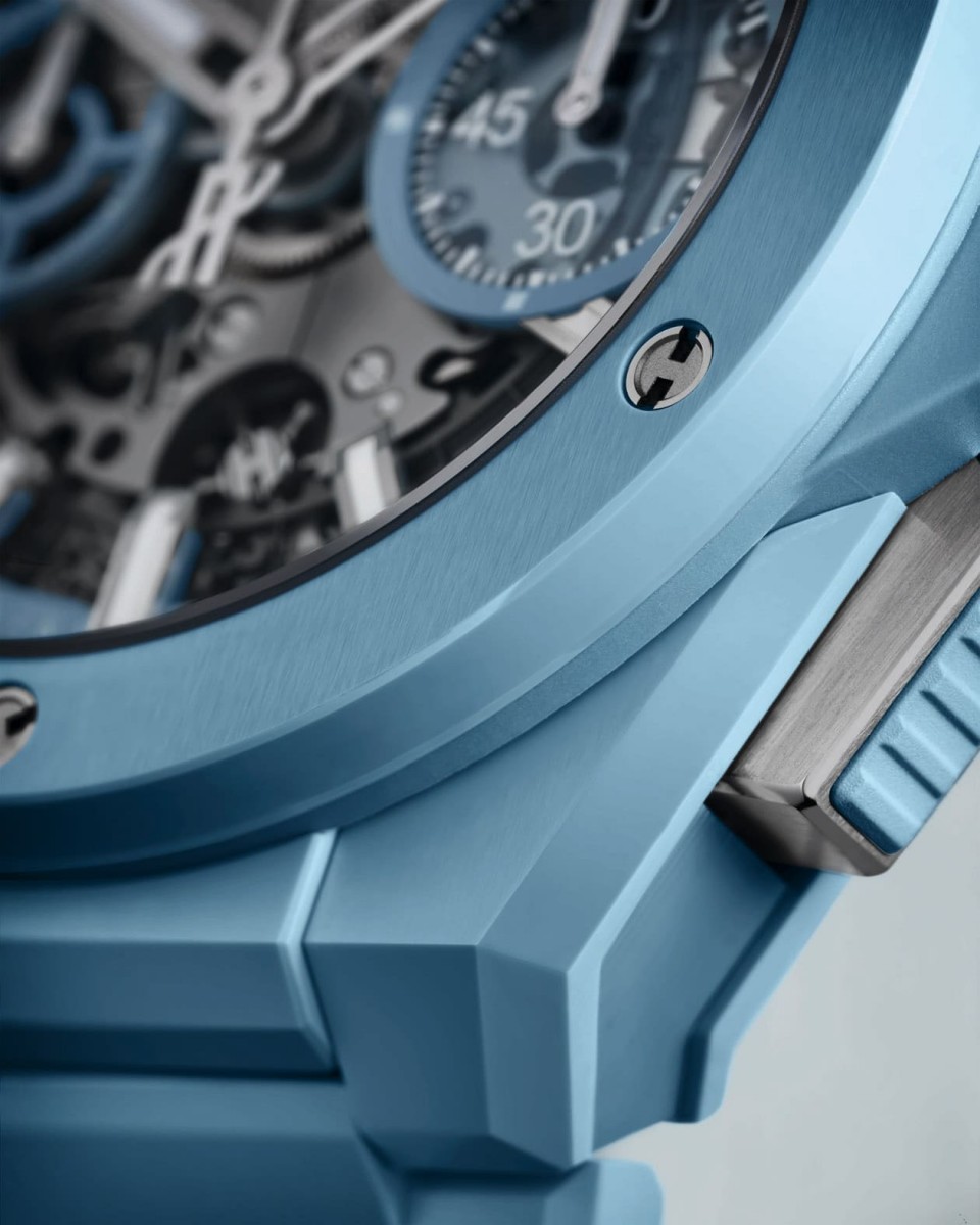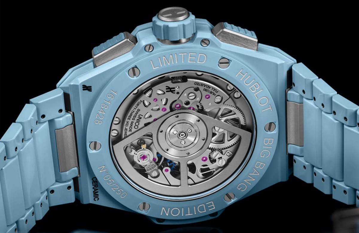 HUBLOT宇舶过往打造All Black系列时首度採用了黑色陶瓷表壳,替手表带来兼具顏值以及高保护性的多重功效,而后品牌陆续开发出白色陶瓷表壳,使其掌握了表坛最主流的两色陶瓷壳制作技术,通常品牌研发出黑、白两色的陶瓷壳后,往往就不会再继续钻研衍生出更多顏色,因为一来其他色彩的陶瓷壳与制作配方与制作难度充满更多未知性与挑战性,再者彩色陶瓷表壳的市场接受度也可能相对有限,因此百搭耐看的黑、白两色陶瓷向来都是表坛的主流。不过宇舶从2018年后便积极挑战这样的传统观念,如同蓝宝石表壳般,品牌也致力寻找能让陶瓷表壳走出黑、白色框架,进一步迈向繽纷彩色的新境界,因此我们陆续见识到品牌发表诸如蓝色、黄色、红色等彩色陶瓷表壳,结果宇舶的奋力一搏获得了市场的广大迴响,因为受到他们不断创作出新色陶瓷表壳的刺激,现在市场上推出彩色陶瓷表壳的品牌也有愈来愈多的趋势,不过要比顏色丰富性,现在还是以宇舶最具代表性,儼然是表坛中的高阶陶瓷表王。