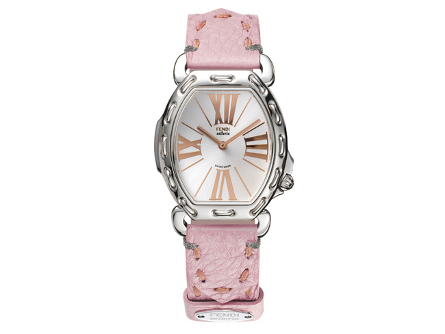 九月初,配戴亮丽的橙色表带,正巧与夏季晒出的古铜色肌肤相互辉印;微凉的十月,孔雀蓝与波尔多酒红表带,正式迎接秋冬的到来;岁末,嫵媚动人的艳红与娇羞的嫩粉红表带,无庸置疑是出席派对时,与手中香檳酒杯,最相衬的华丽娇点。一只高贵手表,同时能表现优雅浪漫、时尚高贵、青春率性等多种风情,让女人在不同时间点,尽情徜徉于专属当季的魅力,发挥无懈可击的美丽表情。也仅有FENDI,在每一季接续带来惊喜,发表眾所瞩目的表带新色。