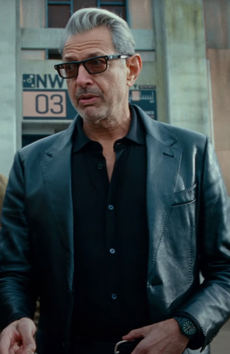 前阵子我们也提过杰夫高布伦的造型师很费工地在他拍摄《侏罗纪世界:统霸天下》之前找上了法国改表品牌MAD Paris洽谈提供改表的事,最终品牌替杰夫高布伦选择的也是镀黑的Milgauss抗磁表。手表面盘6点方向特别加上了橘色的”IM”字样,代表着杰夫高布伦剧中饰演Ian Malcolm博士的姓名缩写,同时改装表品牌也在透明底盖印上《侏罗纪》系列电影的经典镂空暴龙骨头Logo,与前面几位的黑色Milgauss做出细节区隔。