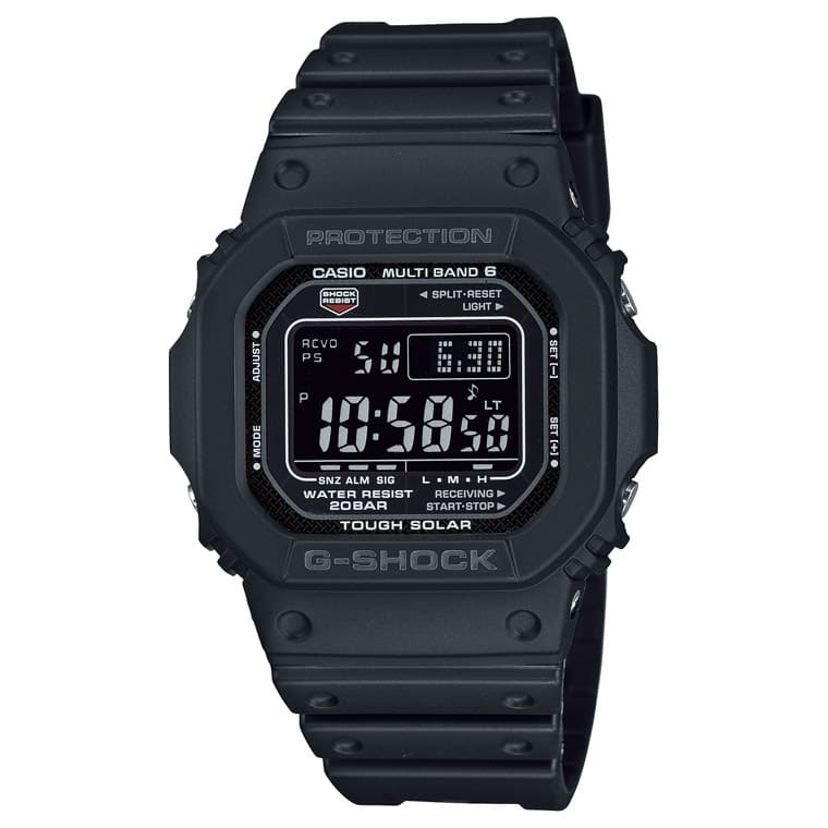 5600系列的全黑款,是G-SHOCK手表的一大经典。这款将液晶萤幕改成了黑底白字,看起来潮味十足。从功能上而论,手表具备太阳能机芯并能接收世界六局电波。无论是第一次买G-SHOCK手表或是已经拥有5600系列(如DW-5600E)的人来说,这款的全黑萤幕都很有吸引力。