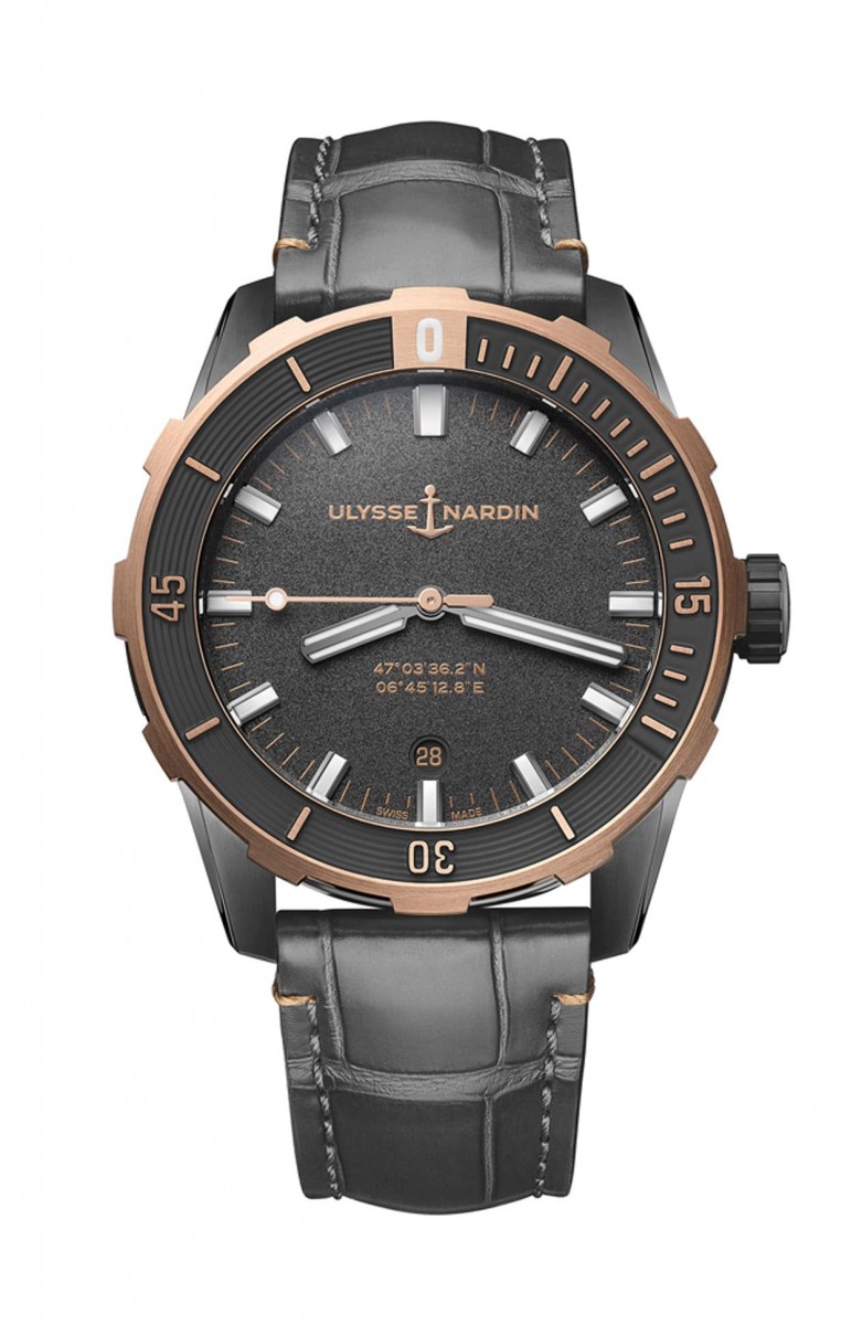 鯊鱼灰色PVD不锈钢、5N玫瑰金材质/UN-816自动上链机芯/时、分、秒、日期显示/蓝宝石水晶镜面/防水300米/表径42mm/参考价:NT$ 327,300