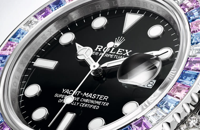 回顾2017年时,劳力士曾推出一款Yacht-Master 40 116695SATS,因为手表玫瑰金表壳的表圈上镶满了彩色宝石和碧绿榴石等看起来繽纷可口而被暱称为「糖果圈」,紧接在隔年品牌发表带有类似概念的玫瑰金Daytona彩虹圈116595RBOW后,终于正式将这种表圈镶上彩色宝石的设计推向巔峰。2022年劳力士一方面新增黄金表壳的Yacht-Master 42;同时间也追加了一款新的Yacht-Master 40(126679SABR),手表这次改成了白金材质,同时表圈一样镶有宝石,不过整体的色调比起前作糖果圈又有新变化,奢华耀眼程度有过之而无不及。