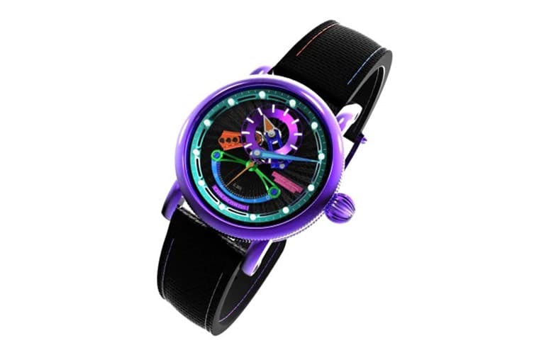 有关那些虚拟手表的部分,CHRONOSWISS大胆让设计师发挥创造力打造出数位的Sugar Rush手表,这款手表外观五彩繽纷,却又带有传统机械表般的指针显示方式,看起来的确很有未来世界的样子。