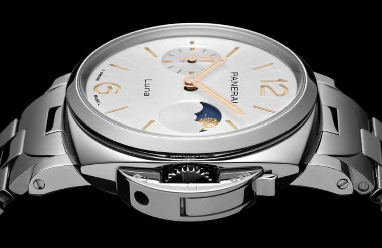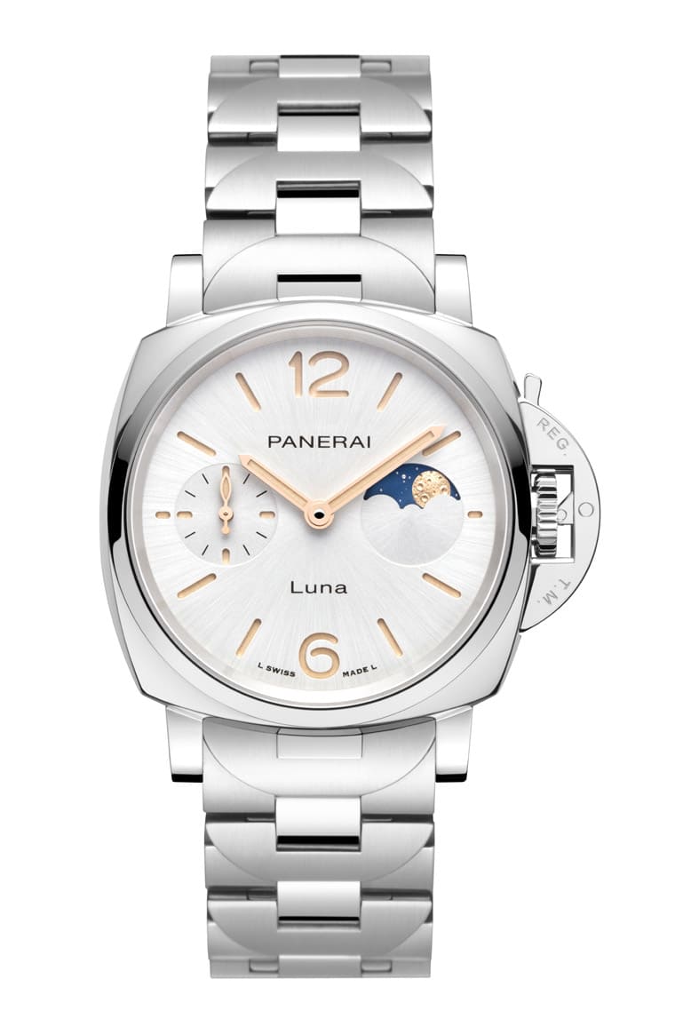月相显示往往让人感觉优雅有气质,而在沛纳海旗下有哪个系列有类似的个性呢?肯定是主打较小、较薄表壳的Luminor Due系列了,目前此系列的表径大概有三种,此次品牌新增的月相表属于其中表径最小的38mm,说是「最小」乃是针对沛纳海手表而言,其实38mm拿到市面上还是男女皆宜的尺寸。Luminor Due Luna目前共有四款,本次介绍的是其中唯一搭配链带的款式(型号为PAM01301),相较于其他三款无论採用不锈钢材质或Goldtech™红金材质都搭配皮革表带,PAM01301的链带让它的中性表定位更加明确。不过要注意的是,相较于其他三款皮带版本,搭配链带的PAM01301反而也是唯一没有採用表带快拆系统的例外,这点和金属链带相对耐用的使用年限多少也有关。