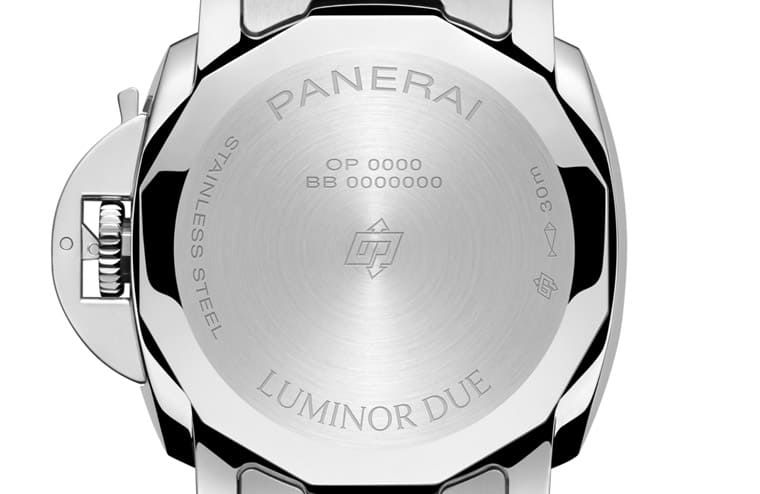 沛纳海以P.900机芯为基础,加装模组衍生出P.900/MP这枚机芯,稍微有点可惜的是,Luminor Due Luna只有玫瑰金款才应用透明底盖,不锈钢款无论搭配皮带或链带一律都採实底盖设计,且底盖本身也没有为了月相功能做出相对应的细节变化,大致就是在底盖放上品牌Logo、系列名称与手表材质、防水性能等资讯。P.900/MP比起P.900机芯,零件数提升至201枚,厚度也增加至5.9mm,不过在摆轮震频(4Hz)以及动力储存空间(3日)方面则都不变,与沛纳海多数三针作品保持高度一致性,就算多了月相功能需要付出额外动能,但是手表的续航力并没有因此而被削弱,在享有月相功能的诗情画意之餘,Luminor Due Luna的实用性还是能令人感到满意。