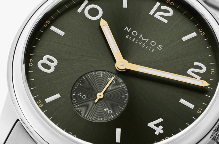 ▲橄欖绿色面盘灵感来自阿里山茂密树海,NOMOS特意将指针镀成金色,藉以和一般Club Sport市售款做出区隔。