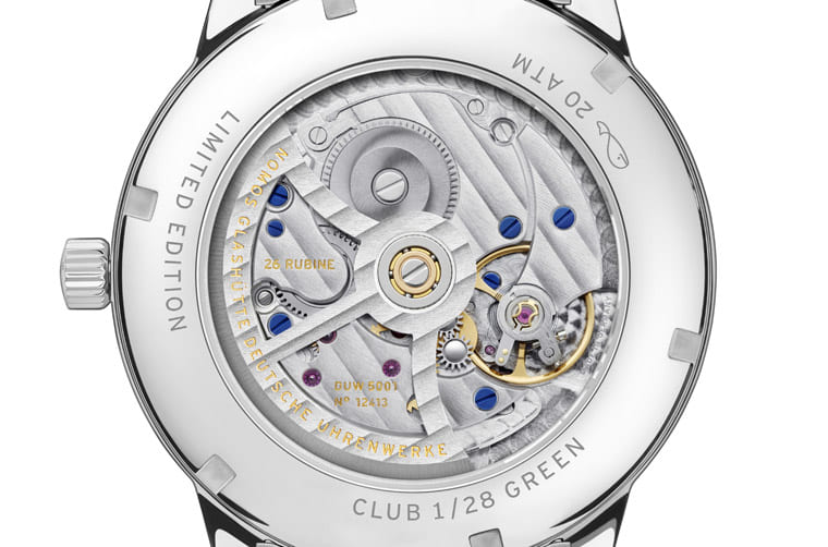 Club Sport Automatik Limited Edition – Green大西门限定款限量28只,底盖边缘刻有每款表的限量编号,全球就只有在大西门钟表发售,喜欢NOMOS手表的表迷,若能入手这麼一款别具意义的表,入手时心中的满足感与成就感想必不在话下。