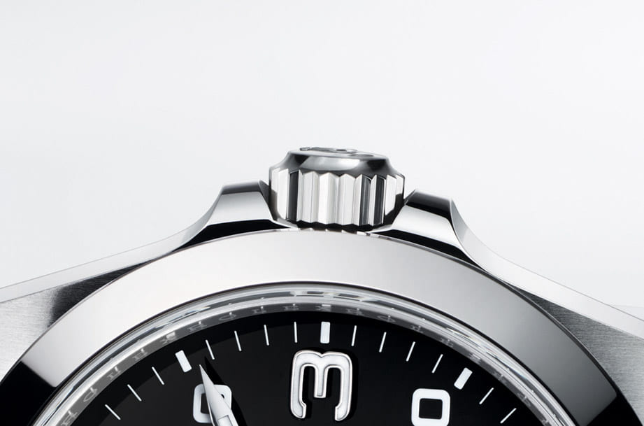 ▲为了强化腕表外观的保护性,劳力士替新款Air-King增设表冠护肩装置,确保表冠更不易因为外部撞击而有所影响甚至损伤。
