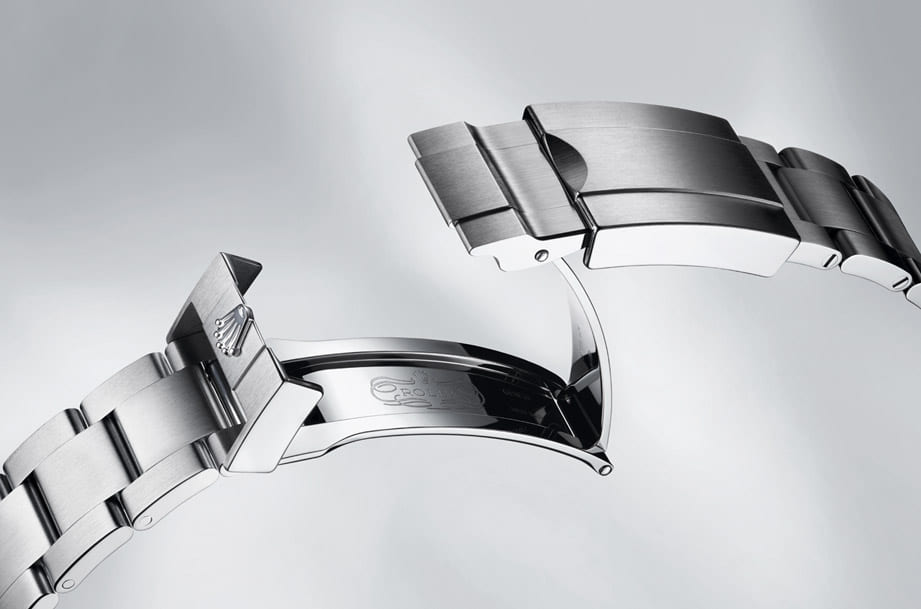 ▲劳力士首度将摺叠蚝式保险扣运用在Air-King系列,其具备双重安全系统能有效防止表扣意外脱落,同时表扣外观亦维持着俐落线条。