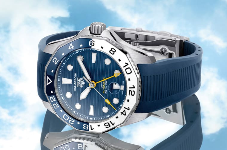 TAG HEUER泰格豪雅招牌潜水表Aquaracer Professional 300功能于2022年再度进化,品牌打造出新款两地时间腕表,不仅可以陪伴表主上山下海,还能跨越全球时区,即时同步了解原居地与所在地的当前时刻,替Aquaracer系列再添吸引人的魅力元素。