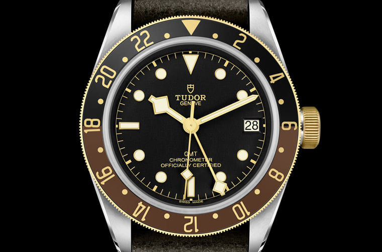 ▲帝舵继2018年后再推新款Black Bay GMT,主要变化在于表壳材质从单纯不锈钢,改为"S&G"这种不锈钢与黄金的半金组合。