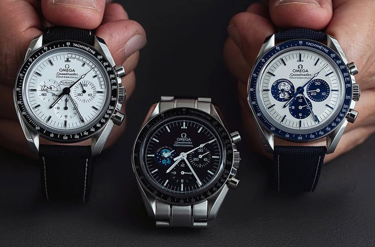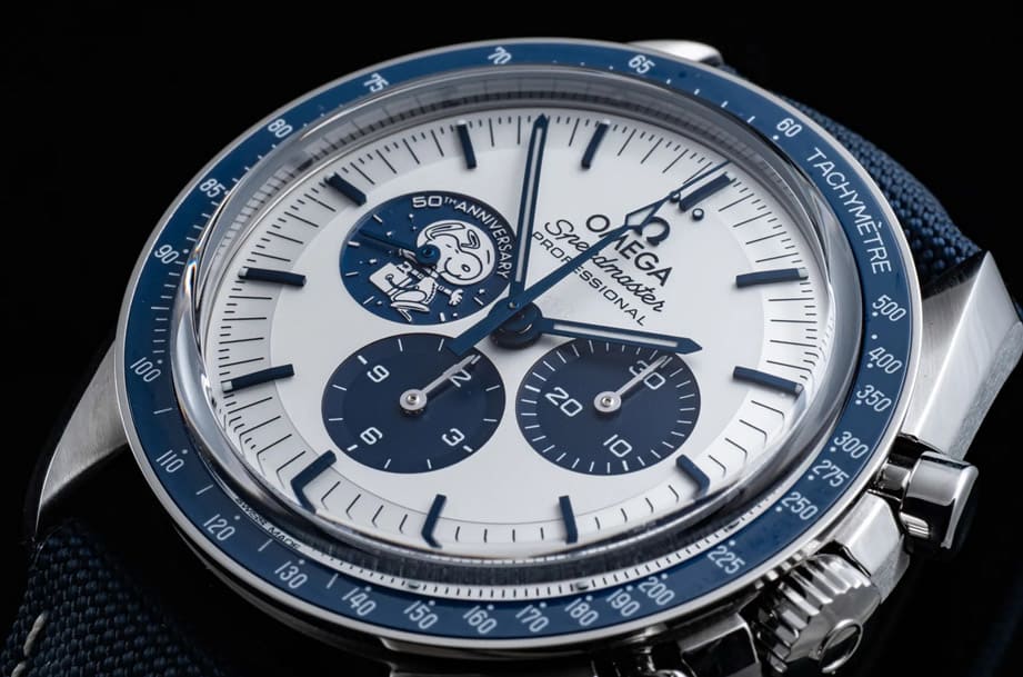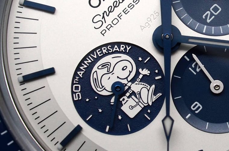首款超霸史努比登月表限量5441只,手表与一般的登月表类似,不过9点方向小表盘放上了银史努比奖章奖章图案,表背也印上了与9点方向小表盘一样的图案。第二代超霸史努比登月表则是直到2015年才推出,这次欧米茄将手表改成了白色面盘,整体设计带有黑白漫画风格,面盘外缘刻度的前14秒印上“What could you do in 14 seconds?” 字样,同时面盘9点方向则印有一个黑白的史努比图案,至于表背就更吸睛了,欧米茄将银史努比奖章图案鐫刻在表背上,立体感十足的样式宛如直接把奖章镶在表背,独具一种精致质感。而第三代超霸史努比登月在2020年,也就是阿波罗13号任务的50周年登场,手表换上了蓝色陶瓷表圈,以及白色面盘搭配蓝色小表盘,9点方向为蓝底白色银史努比奖章图案,重头戏则是表背的史努比计时码表活动装置。