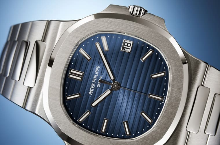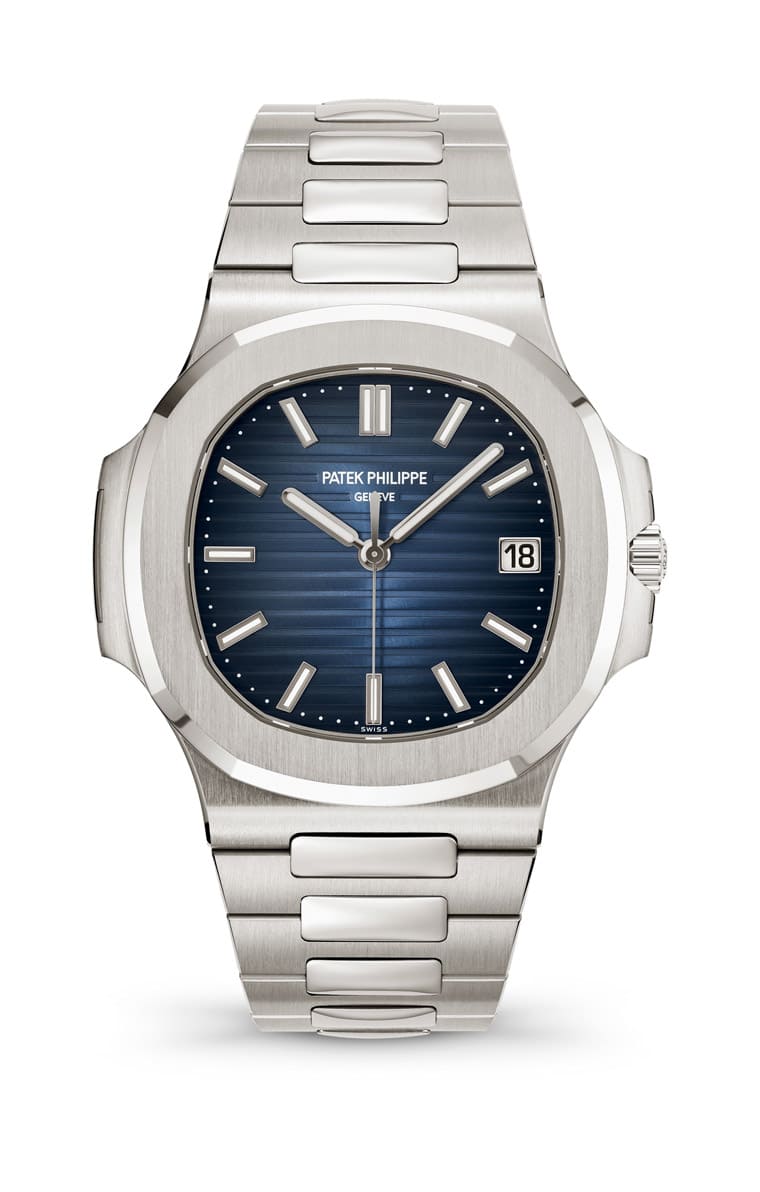 5811/1G一改传统金鹰基本款的不锈钢表壳配置,一登场就採用白金表壳展现表王出品的气势,同时百达翡丽还默默将表径从5711的40mm为增至41mm,另外熟悉的水平横纹面盘则保留系列优良传统,以经过太阳纹处理的蓝黑渐变色调呈现,还有些比较不容易一眼注意到的细节如面盘3点方向的日期窗加装白金框架、甚至日期显示盘的阿拉伯数字字体也一併调整成金鹰40周年纪念表5711/1P的特别式样。