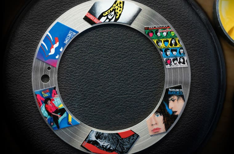 ▲面盘外缘转盘以手绘方式画上滚石合唱团专辑封面,表主可以从23张专辑中挑出6张交由品牌工艺师绘制。