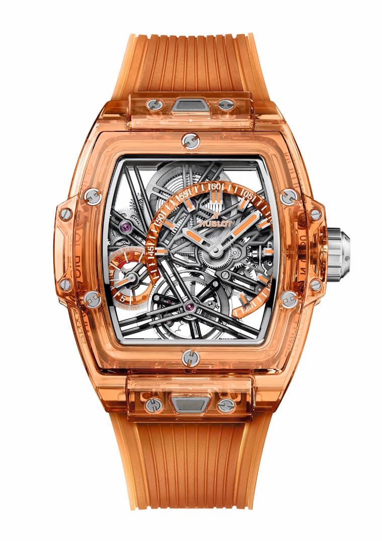高调抢眼酒桶形橘色蓝宝石表壳——Spirit of Big Bang冰橙蓝宝石陀飞轮五日链手表