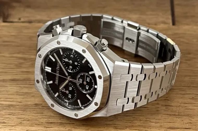 现今的皇家橡树系列拥有几个新特徵,例如表壳上下方的斜面加大,增强手工雾面打磨与亮面拋光交相辉映的对比效果,同时底盖也更没入表壳中,呈现更服贴的佩戴感受。此外搭配金属链带的款式也可以发现它的链带造型有点不一样,因为AP此次把前段的链节从原本的平行四边形改为梯形,如此使得链带会有一种逐渐收窄的效果,而且细看还会发现到靠近表壳的前面四枚链节厚度慢慢再降低,这种设计一开始只有K金款的皇家橡树手表才有,但是到2022年时也已经拓展到不锈钢和钛金属款式中。