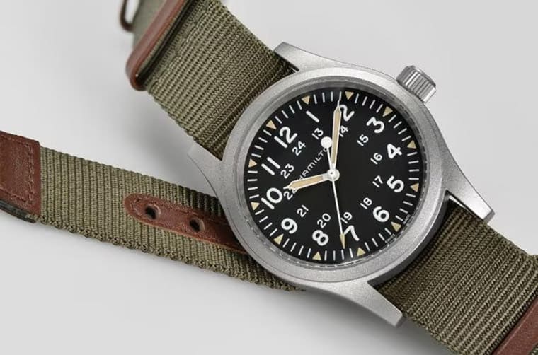 汉米尔顿的卡其野战系列带有浓浓的军事风格,这种设计的表其他品牌也有出过,但是汉米尔顿兼顾品牌知名度与价格竞争力,而且它还有个隐藏版的优势在于款式多元,例如有不锈钢材质、黑色PVD材质、青铜材质等等,也有NATO表带、钢带或皮带可选,而在面盘部分又有白色、黑色与棕色等选择,且面盘设计含有12小时和24小时刻度这种传统军表格局,比起一般入门等级机械表也多了点特色。
