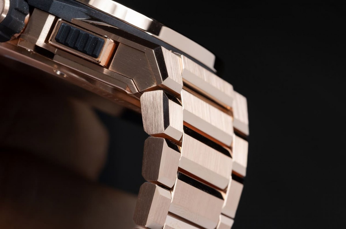 ▲链带的保护性和耐用度俱佳,搭配运动风格腕表儼然是绝佳组合,宇舶近年大力研发此类作品完美回应市场的殷切需求。