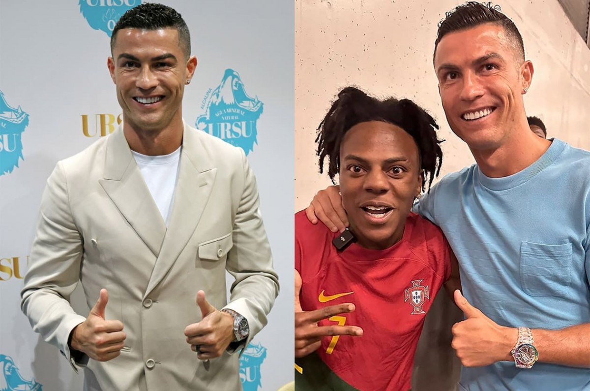 ▲葡萄牙足球巨星C罗最近常在社群平台晒出自己佩戴宇舶的Big Bang Integrated陀飞轮蓝宝石链带彩虹腕表。Source:Instagram @cristiano、@ishowspeed