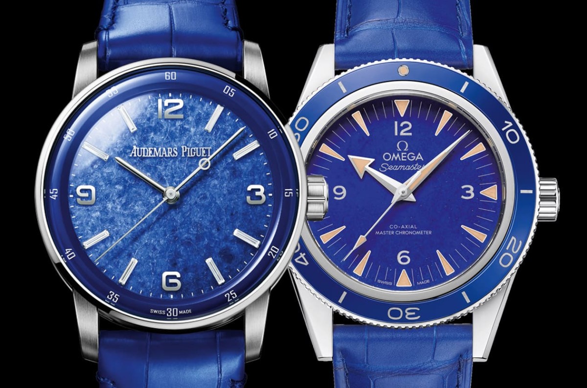 ▲欧米茄继先一步发表的黄金表壳搭孔雀石面盘海马300米之后,相隔不久后又再推铂金表壳搭配蓝色陶瓷圈和青金石的组合,华丽程度破表。